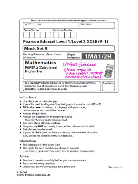 year 9 maths mock exam papers